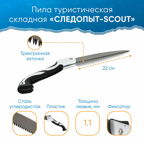 Пила туристическая складная 22 см лезвие следопыт-scout / Пила следопыт PF-ST-F08 / Ножовка садовая складная, для обрезки деревьев, веток