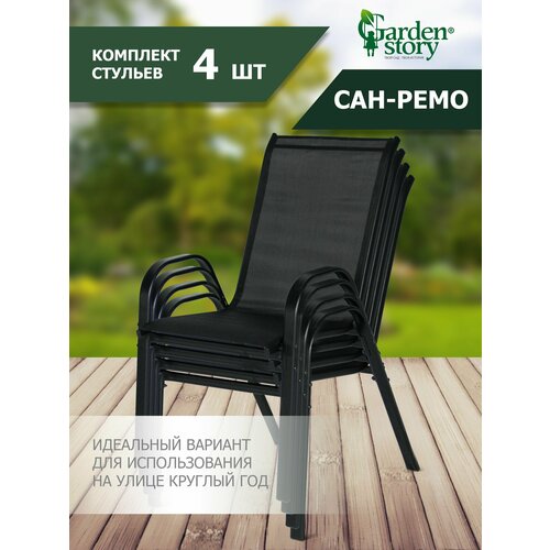 Комплект стульев "Сан-Ремо", Кресло садовое 4 штуки для дачи, кафе и ресторанов, 55х73х91 см, текстилен/металл, темно-серый/черный