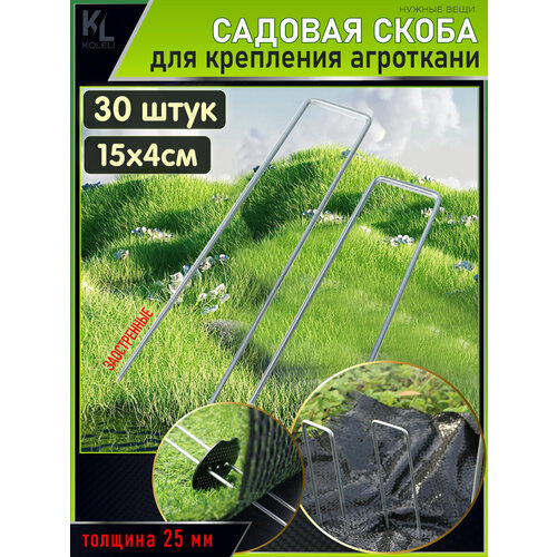 KoLeli / Скобы садовые, колышки для крепления агроткани, прижимы металлические, 30 шт.