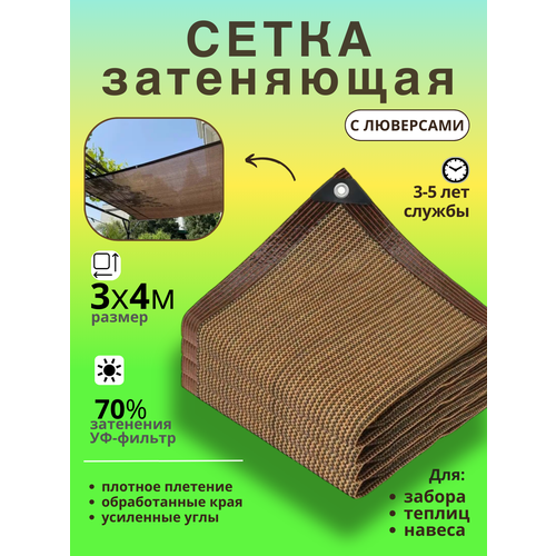 Сетка затеняющая, коричневая 3х4, для навеса, забора и теплиц