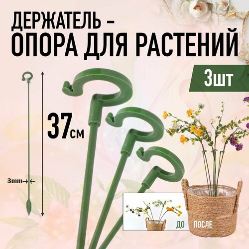 Держатель опора для растений 37 см (3шт, Зелёные)
