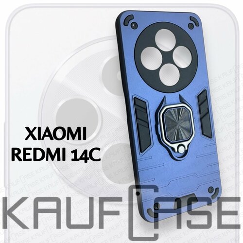 Противоударный чехол на Xiaomi Redmi 14C (6.88"), темно-синий. Кольцо-держатель и магнитное крепление, яркие пластиковые защитные вставки