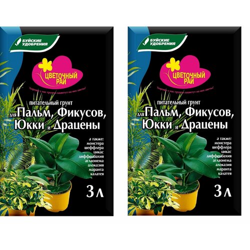 Грунт питательный "Цветочный рай" для пальм, фикусов, юкки и драцены 6 л (2 шт по 3 л)