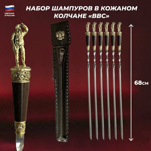 Подарки Набор из шести шампуров "Лётчик ВВС" в кожаном колчане