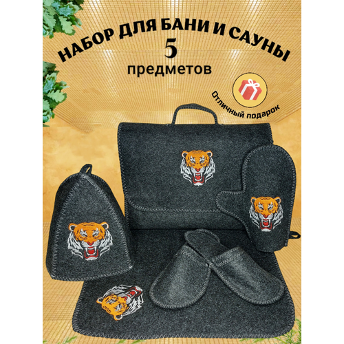 Подарочный набор для бани и сауны "ТИГР", 5 аксессуаров, унисекс