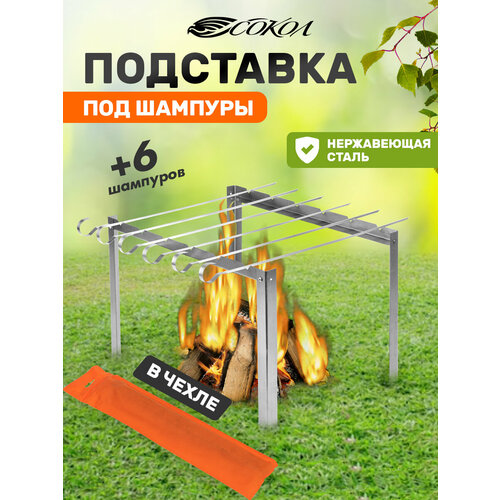 Подставка для шампуров сокол в комплекте с 6 шампурами в удобном чехле