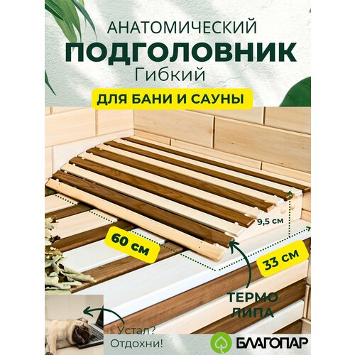 Подголовник для бани и сауны анатомический гибкий Большой благопар Термо Липа 60*34*10 см