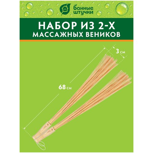 Набор из 2 веников массажных, бамбуковых, для бани и сауны, "Банные штучки"