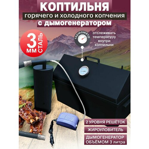 Коптильня горячего и холодного копчения с дымогенератором и гидрозатвором из стали 3мм
