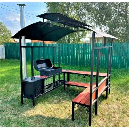 Мангальная беседка "Вайро" с крышей, с жаровней и печью, с лавочкой