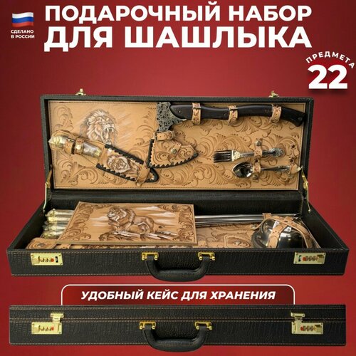 Подарки Набор для шашлыка "Львиный" в чемодане (29 предметов)