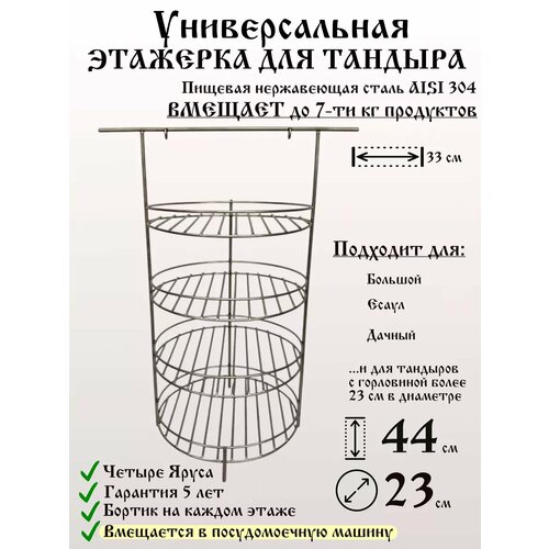 Этажерка для тандыра 4-х ярусная диаметр 23 см. с бортом