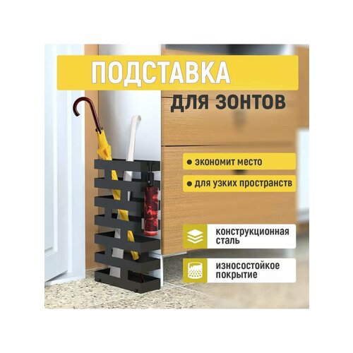 Напольная подставка СТЭН для зонтов, тростей, обувных ложек, металл, черная, прямоугольная