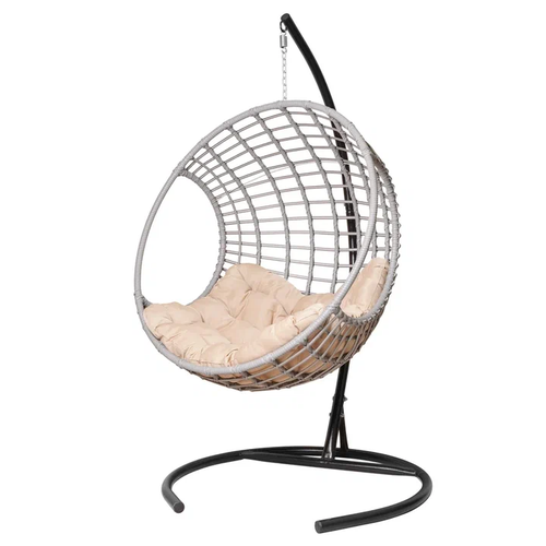 Кресло подвесное "Tropica", серое, со стойкой, бежевая подушка (чехол в подарок)