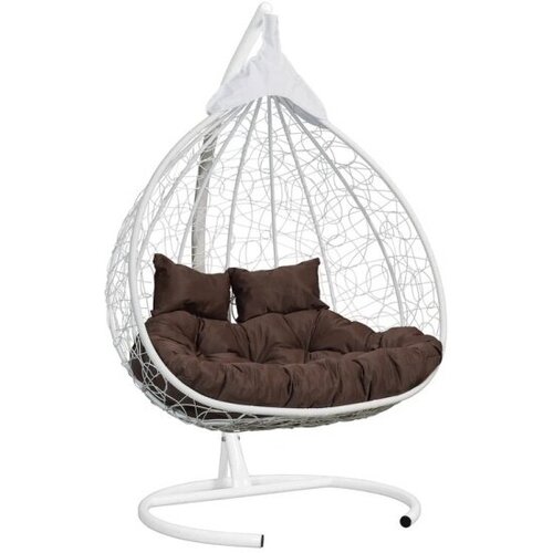 Подвесное кресло кокон двухместное LAURA OUTDOOR FISHT белое + коричневая подушка (полиэстер)