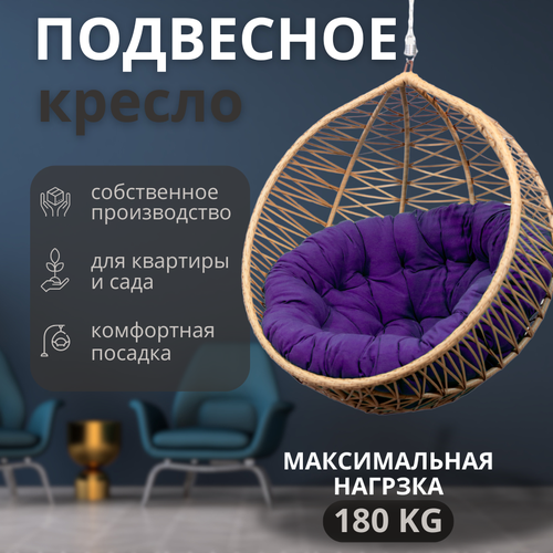 Подвесное кресло , 110*95*70, бабочка, без стойки, бежевое, сиреневая подушка