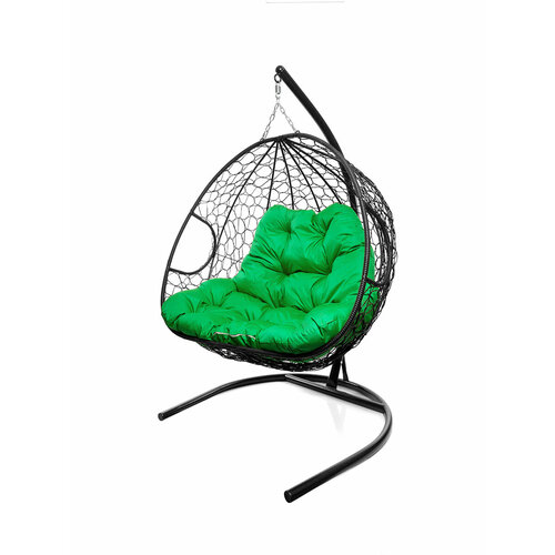 Подвесное кресло из ротанга "Для двоих" черное с зеленой подушкой M-GROUP