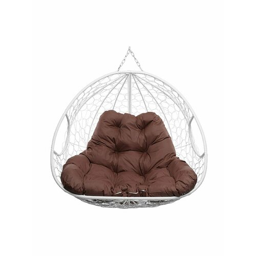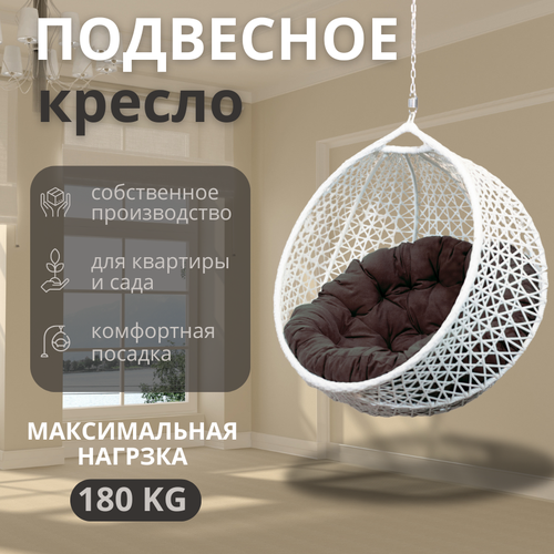 Подвесное кресло садовое, снежка без стойки, белое, темно-коричневая подушка
