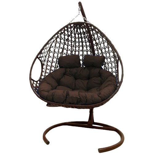 Подвесное кресло из ротанга "Для двоих" коричневое с коричневой подушкой M-GROUP