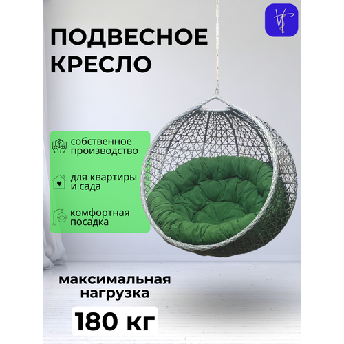 Подвесное кресло белое Для двоих люкс зелёная подушка
