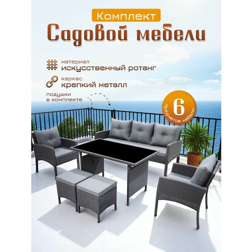 Комплект садовой мебели из искусственного ротанга "Пикник-7+", серый