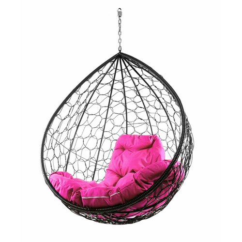 Подвесное кресло капля (без стойки), с ротангом черное, розовая подушка