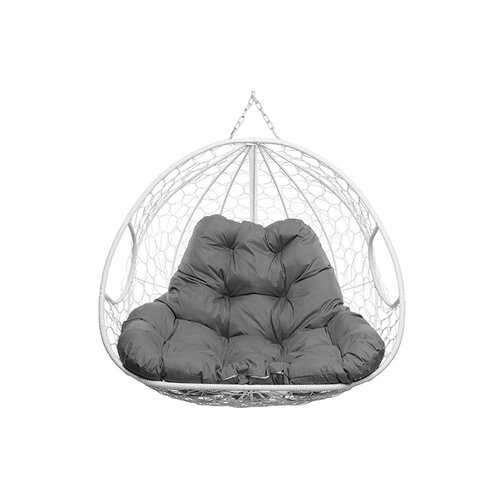 Подвесное кресло для двоих (без стойки), с ротангом белое, серая подушка