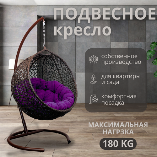 Подвесное кресло кокон, 110*78*100, снежка, венге, сиреневая подушка