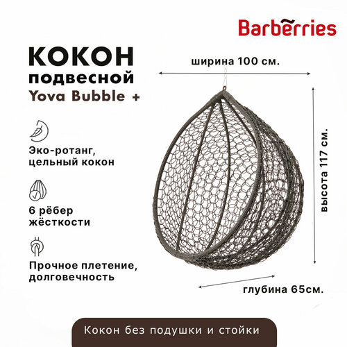 Подвесное кресло кокон садовое. Качель из ротанга Barberries, Yova Bubble Plus, цвет венге