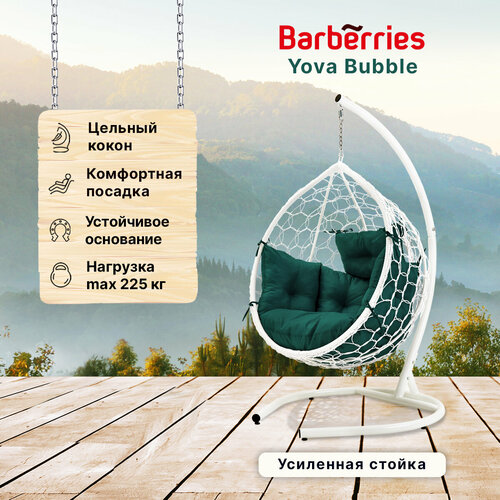 Подвесное кресло кокон садовое Yova Bubble. Стойка белая до 225 кг, подушка комфорт зеленая