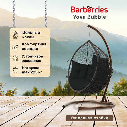 Подвесное кресло кокон садовое Yova Bubble. Стойка венге до 225 кг, подушка комфорт черная