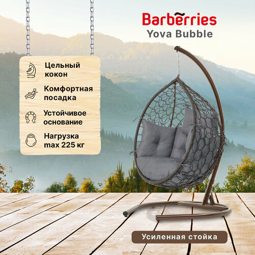Подвесное кресло кокон садовое Barberries Yova DeLuxe Cross. Стойка белая до 225 кг, подушка комфорт серая