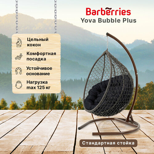 Подвесное кресло кокон садовое Barberries BubblePLUS . Cтойка венге до 125 кг, подушка круглая черная