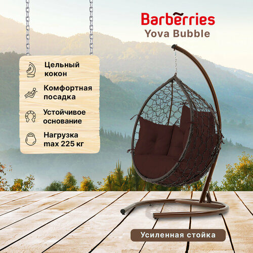 Подвесное кресло кокон садовое Barberries BubblePLUS . Стойка венге до 225 кг, подушка комфорт коричневая
