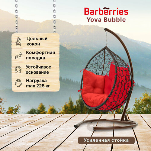 Подвесное кресло кокон садовое Barberries BubblePLUS . Cтойка венге до 125 кг, подушка комфорт красная