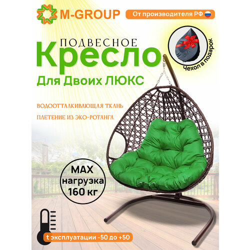 Подвесное кресло коричневое Для двоих люкс зелёная подушка