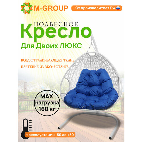 Подвесное кресло белое Для двоих люкс синяя подушка