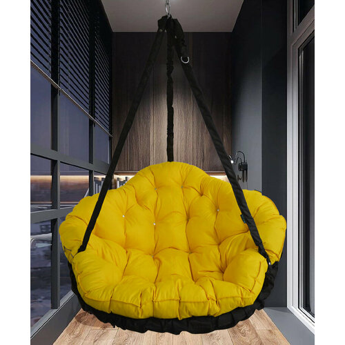 Подвесное кресло черное Для двоих люкс бежевая подушка