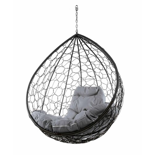 Подвесное кресло капля (без стойки), с ротангом черное, серая подушка
