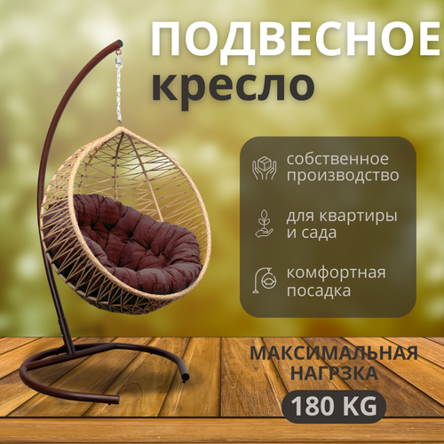 Подвесное кресло бабочки, 100*78*110, бежевое, темно-коричневая подушка