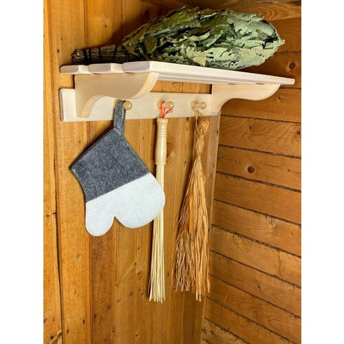 Полка вешалка для бани "Универсальная" 3 крючка липа,50*30*12 см бежевый