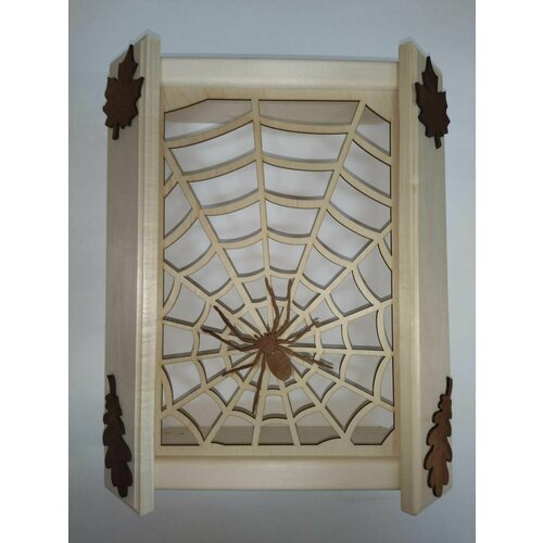 Абажур для бани и сауны липа угловой Паутина Паук с листиками