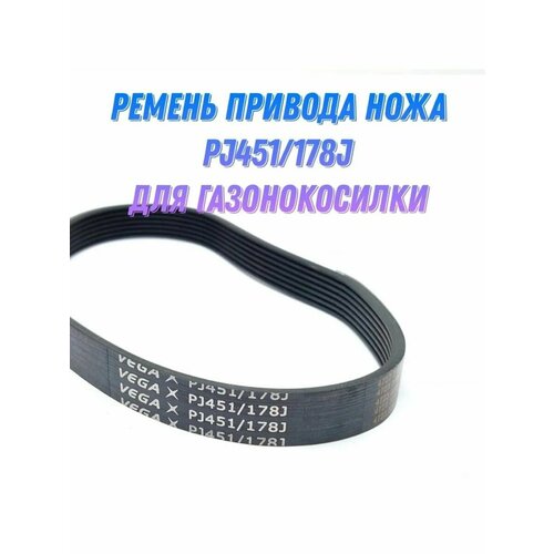 Приводной ремень привода ножа PJ451/178J 6 ручьёв для газонокосилки Зубр, AL-KO, DDE, Redverg и др.