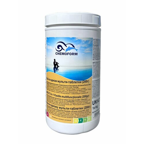 Всё в одном: хлорные мульти - таблетки для бассейна по 200 г в банке 1 кг. Chemoform (кемоформ)
