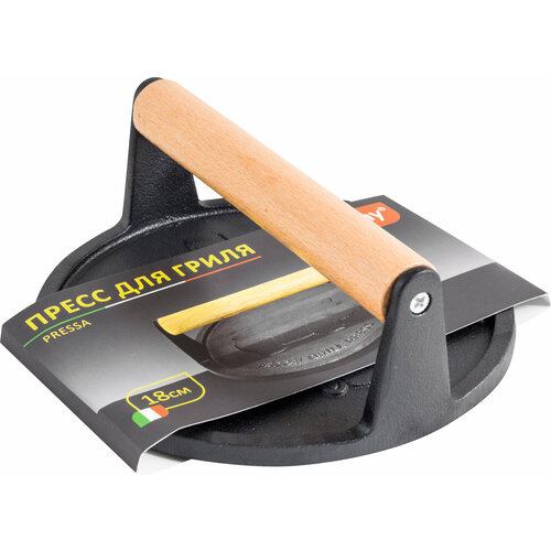 Пресс для гриля чугунный с деревянной ручкой, круглый, PRESSA, диа 18 см, тм Mallony