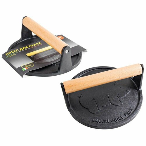 Пресс для гриля чугунный с деревянной ручкой, круглый, PRESSA, диа 18 см