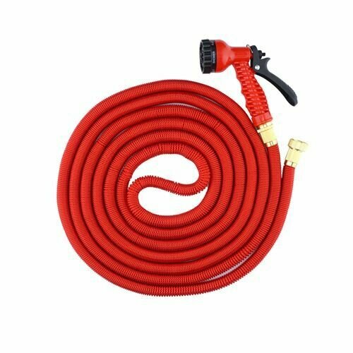 Шланг для полива / Садовый/ Растягивающийся /C насадкой-распылителем, красный, 15 метров