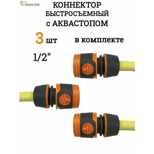 Коннектор для шланга 1/2" с аквастопом быстросъемный, мягкий пластик / насадка на шланг для полива. 3 штуки