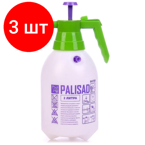 Комплект 3 штук, Опрыскиватель 2 л ручной с насосом и клапаном сброса давления Palisad 64738