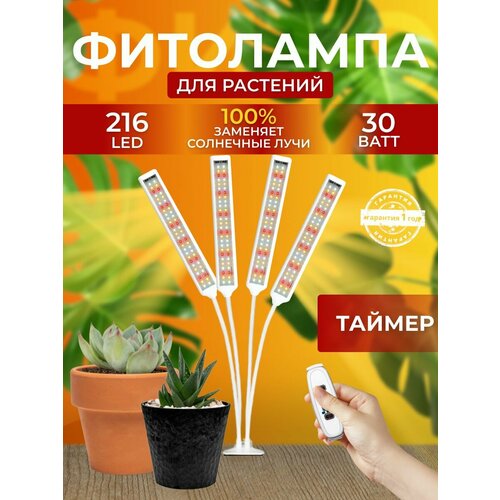 Фитолампа для растений рассады полный спектр Фитосветильник светодиодный для цветов с прищепкой и таймером, 216LED